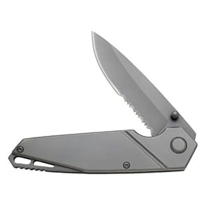Product Description : Carry the No.75692 Tex X INCEPTRA-T and you know the job will get done. The partially serrated 440 Stainless Drop Point Blade and stainless handle feature a Titanium coat for added toughness. With thumb stud for smooth one-hand-opening, liner lock for added confidence and pocket clip for easy access, the INCEPTRA-T is ready when you are. Model: T0074.5TSBlade Style: Drop Point Blade w/Partial Serration and Titanium Coat Blade Steel: 440 Stainless Lock Style: Liner LockHandle: Stainless w/Titanium Coat Clip: Stainless Pocket ClipSize: 4.5 in/11.43 cm closed Weight: 5.4-Ounce/153.09 gTec X is a brand of high-quality, stylish knives that are engineered using the latest technology and high grade materials. Tec X knives are made for those looking for the ultimate utility knife that really lasts. Whether it