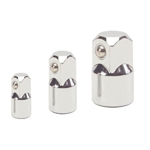 Product Description : From the ManufacturerThe TEKTON 3-piece Ratchet Adapter Set features drop forged carbon steel and durable chrome plated finish resists corrosion. A spring-loaded ball bearing retains socket on extension. The adapter set has a lifetime replacement guarantee. Set Includes: 1-piece 1/4-Inch Dr. (F) by 3/8-Inch Dr. (M) Adapter; 1-piece 3/8-Inch Dr. (F) by 1/2-Inch Dr. (M) Adapter; 1-piece 1/2-Inch Dr. (F) by 3/4-Inch Dr. (M) Adapter. Product Description : MIT 3-PC. RATCHET ADAPTER SET features: Drop Forged Carbon Steel, Heat Treated and Chrome Plated, Notches in Sockets Lock onto Ratchets or Extensions, Spring-Loaded Ball Bearings Hold Sockets Securely, 1-pc. 1/4"-Dr. (F) x 3/8"-Dr. (M) Adapter, 1-pc. 3/8"-Dr. (F) x 1/2"-Dr. (M) Adapter, 1-pc. 1/2"-Dr. (F) x 3/4"-Dr. (M) Adapter