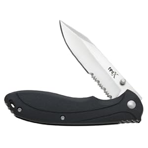 Product Description : The No.75676 Tex X X-Pro II knife features a 440 Stainless steel Tanto Blade with partial serration, thumb stud for one-hand-opening and a liner-lock for added confidence. The handle is Black Glass Reinforced ABS