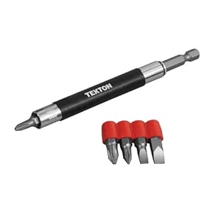 Product Description : From the ManufacturerRetractable Sleeve Guides Screw for a Straight Drive Every Time, Magnetized Tip Holds Screw in Position for Accurate Start, Allows One Hand Driving - Frees Second Hand for Positioning Work Pieces, Prevents Screw Wandering in Tough Wood Grain and Near other Holes, Screw Capacity: 2-1/2-Inch Length, Sandblasted Chrome Vanadium Steel Bits. Product Description : MIT RETRACTING SCREW HOLDER/DRIVER features: Retractable Sleeve Slides Over Screw Head and Guides Screw for a Straight Drive, 4-3/4" Sleeve Extends to 8" to Guide Screws up to 2-1/2"-Long, Magnetized Bit Holds Screw in Position for Accurate Start, Driver Accepts All Standard 1/4"-Driving Bits, Professional-Grade Chrome Vanadium Steel Bits, Allows One Hand Driving - Frees Second Hand for Positioning Work Pieces, Prevents Screw Wandering in Tough Wood Grain and Near other Holes, 1-pc. Retracting Screw Holder/Driver, 2-pc. Flat Bits (1"): 3/16", 1/4", 2-pc. Phillips Bits (1"): No. 1, No. 2, 1-pc. Drywall Bit (1"): No. 2, 1-pc. PVC Bit Holder