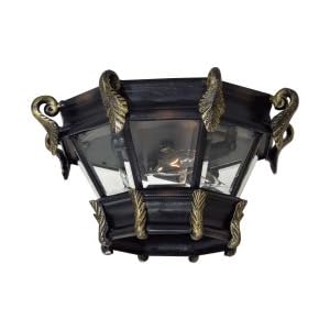 Category: Tools & Home Improvement Vendor: 14 1/2"W x 7 1/2"H 3-40W Heritage w/Gold Highlights Clear Beveled Glass Product Description : Finish:Heritage w/Gold Highlights, Light Bulb:(3)40w B10 Cand C Incand Three Light Flush Mount with Clear Beveled Glass diffuser