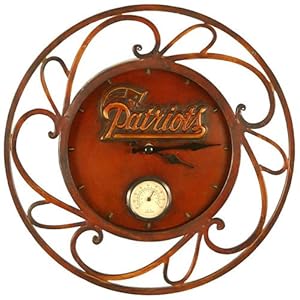 Product Description : Team:New England Patriots Round Clock Thermometer These beautifully crafted round clock thermometers are a great way of rooting for your team. Made of resin, these clocks have an 'old world' look that is painted by trained artisans. Always know the time and the temperature when you're outdoors showing off your team spirit.