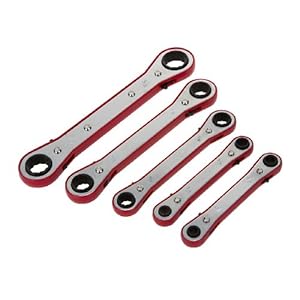 Product Description : From the ManufacturerRugged Carbon Steel and Nylon Housing, Corrosion-Resistant Chrome Plated Finish, Precision-Machined 6- and 12-Point Box Ends, Lever Selector Reverses Drive Without Removing Tool from Fastener. Product Description : MIT 5-PC. BOX RATCHET WRENCH SET features: Durable Nylon Housing, Heat Treated Carbon Steel Panels with Chrome Plated Finish, Precision-Machined, Carbon Steel 6-Point Box Ends, Push Button Reversing Without Removing Tool, 5-pc. Box Ratchet Wrench (SAE): 7/32 x 9/32, 1/4 x 5/16, 3/8 x 7/16, 1/2 x 9/16, 5/8 x 3/4"